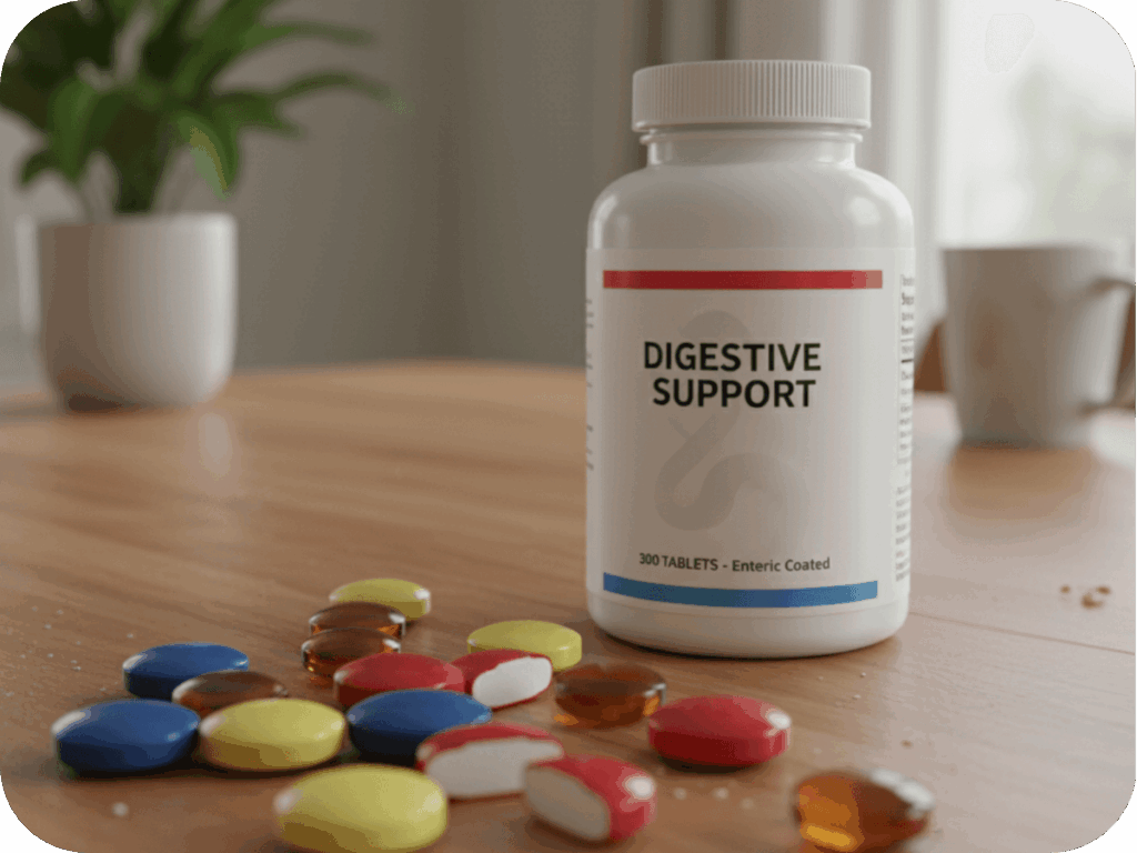 Some of the most beneficial supplement ingredients, such as enzymes and probiotics, require protection from the stomach’s harsh acidity. Enteric coating tablets are our precision solution for this challenge. Our expertise at Bactolac ensures a controlled-release delivery system, guaranteeing that your formulation reaches the small intestine intact for maximum bioavailability and reduced gastric discomfort.